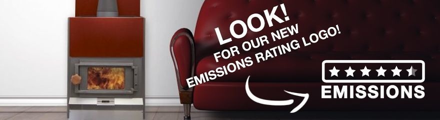 Design for Pivot Stove and Heating.Banner + Emissions Rating